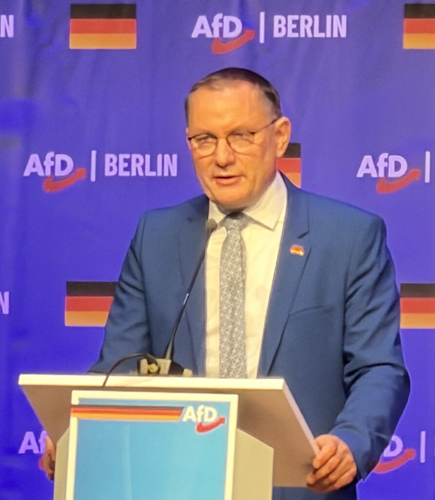 Als Gäste konnte die AfD-Berlin in Jüterbog auch Tino Chrupalla, (siehe Foto) und Dennis Hohloch sowie Arne Raue begrüßen. Tino Chrupalla ist zusammen mit Alice Weidel Partei- und Fraktionsvorsitzender. Dennis Hohloch gehört dem Brandenburger Landtag an. Arne Raue war einst Bürgermeister in Jüterbog. Seit Februar 2025 gehört er dem Deutschen Bundestag an.