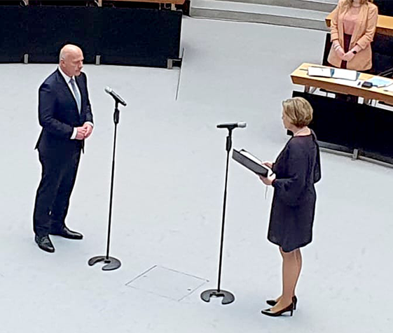 Kai Wegner wird von Parlamentspräsidentin Cornelia Seibeld ( beide CDU) am 27.04.2023 vereidigt. (Foto: Volker Neef)