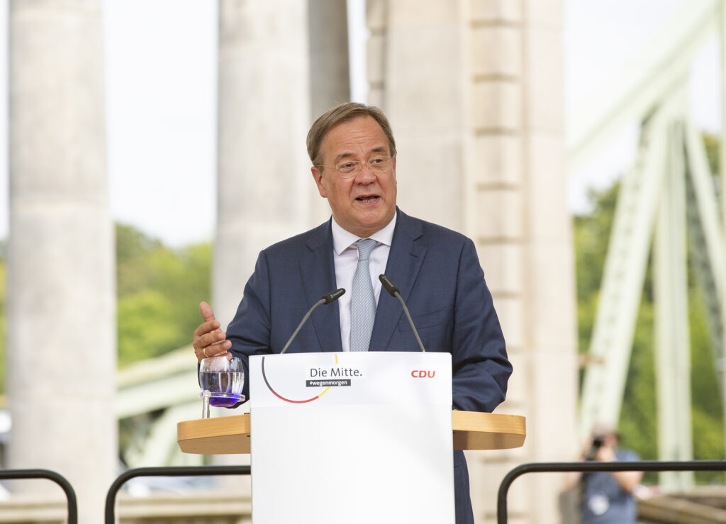Gedenkfeier zum 60. Jahrestag zum Bau der Berliner Mauer an der Glienicker Brücke mit dem CDU Vorsitzenden und Bundeskanzlerkandidat Armin Laschet CDU, dem Innenminister des Landes Brandenburg, Michael Stübgen und dem Landesvorsitzenden der CDU Berlin und Kandidat für das Amt des Regierenden Bürgermeisters von Berlin Kai Wegner