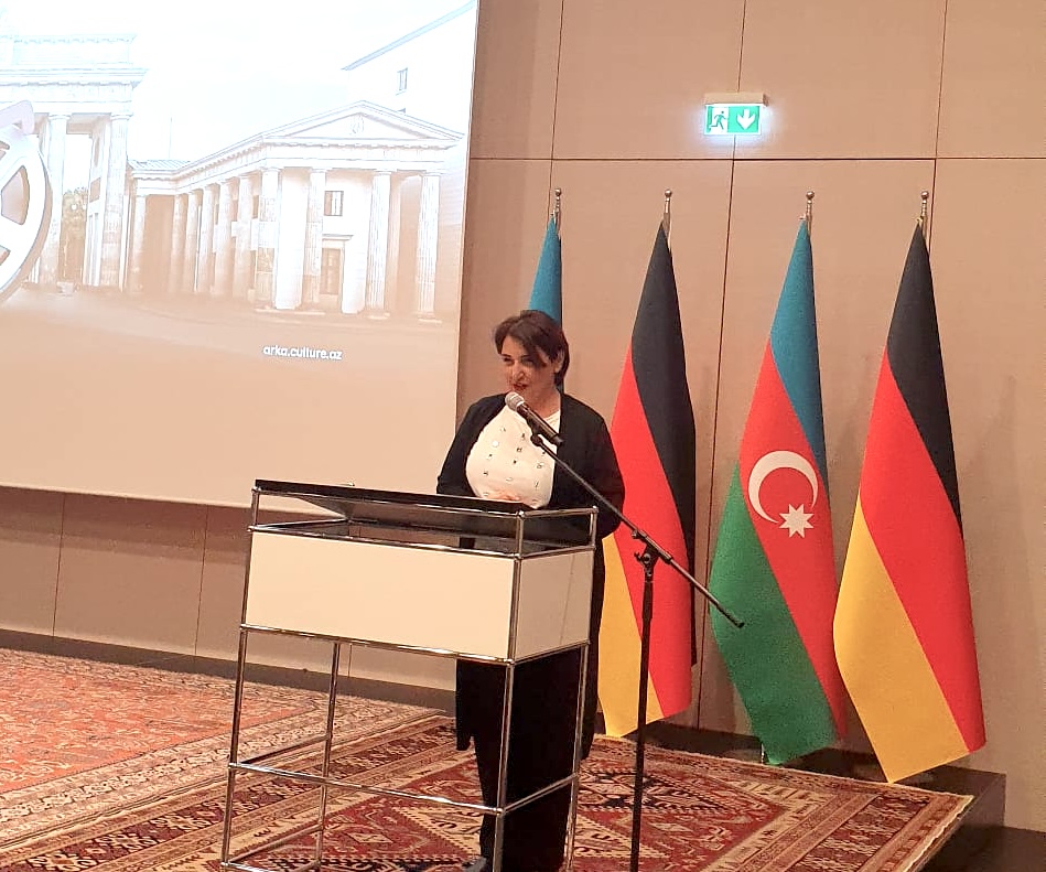 Mehriban Zeki wies daraufhin, dass im Aserbaidschanischen Kulturzentrum die Gäste sich an einer Gemäldeausstellung erfreuen können. Die Kunstwerke zeigen Szenen aus berühmten aserbaidschanischen Filmproduktionen.