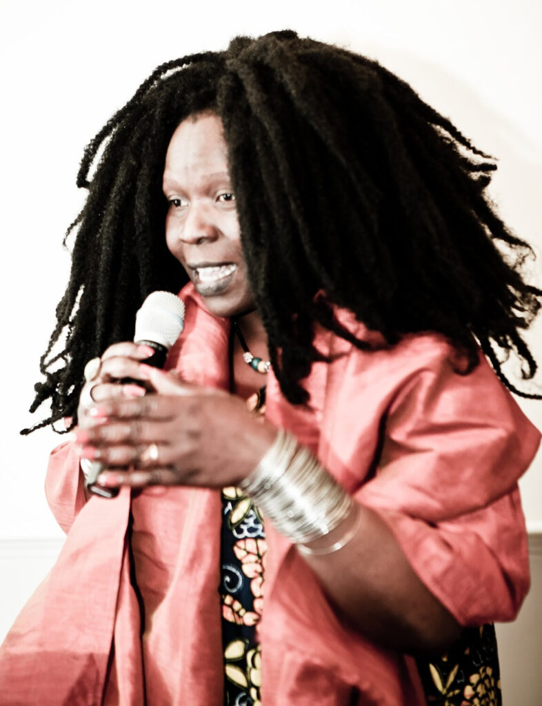 Unser Ehrengast Angelina Akpovo, Sängerin, Komponistin und Tänzerin aus Benin lebt schon lange in Hamburg und baute dort das Afrikafestival Alafia auf. Mit ihrer Musik zu traditionellen Afrobeat und Soul und ihrer Tanzkunst hat sie viele Jahre ihre musikalische Karriere erfolgreich ausgelebt.