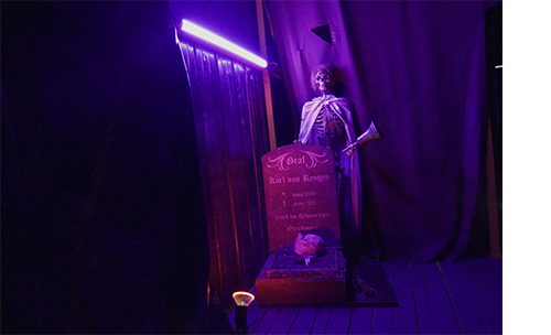 Man trifft auf einen sehr seltenen Beruf bei diesem Schausteller an. Mit einem verschmitzten Lächeln teilte er im Pressegespräch mit: „Der Beruf des Erschreckers ist sehr, sehr selten hierzulande. Bei mir ist nur ein einziger Erschrecker unter Vertrag. Man findet so schwer geeignetes Personal. Die Ausbildungszeit beträgt ja auch 20 Jahre“.