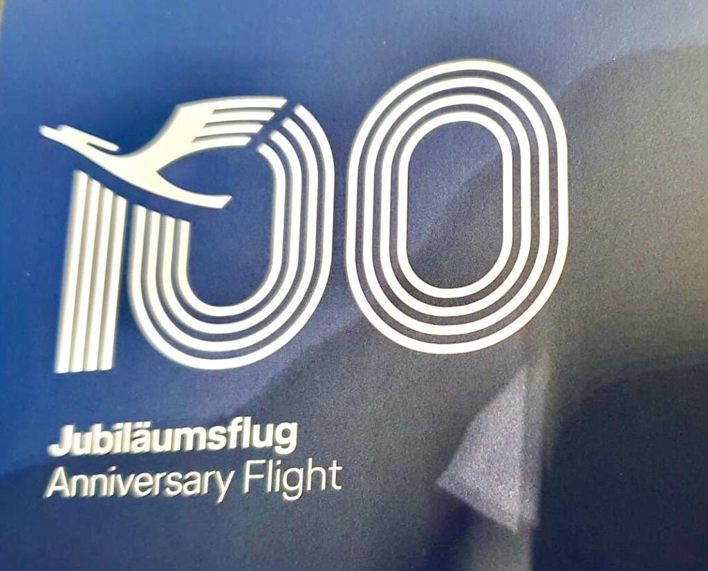 Bei ihrer Gründung schrieb man sich noch getrennt und bot Flüge an unter dem Namen „Deutsche Luft Hansa A.G.“ Den 100. Jahrestag des ersten Lufthansafluges hat man natürlich gewürdigt.