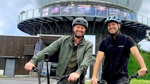 hr3 Morningshow-Moderator Tobi Kämmerer war schon einmal auf der Wasserkuppe. Damals ging es mit dem Gleitschirm von oben hinab ins Tal. Dieses Mal geht’s auch nach unten – aber auf sogenannten Monsterrollern 11 Kilometer über Wanderwege bis nach Poppenhausen. Adrenalin, aber auch ganz viel Natur, ein einmaliges Erlebnis für Tobi.