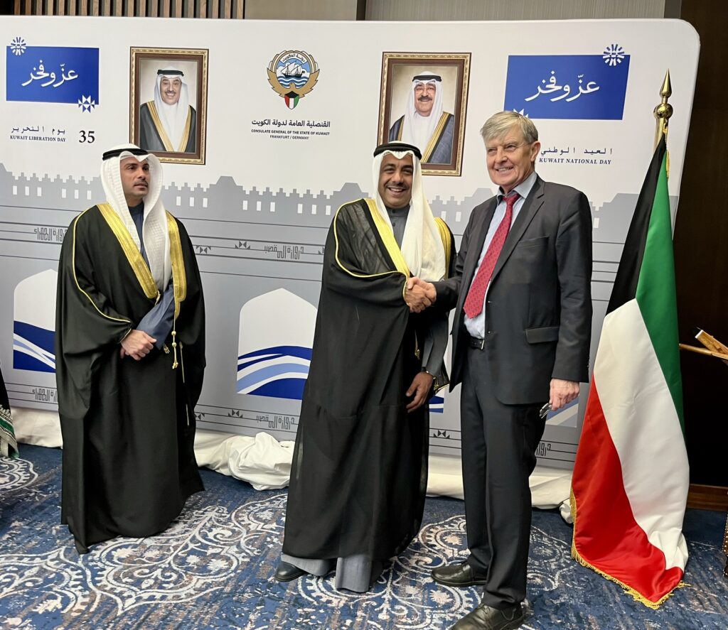 Nunmehr hatten der amtierende Generalkonsul, S. E. Herr Adel Alghenaiman, nebst Gattin zum 2. Februar zu einem festlichen Empfang anlässlich des 65. Nationalfeiertag Kuwaits und des 35. Jahrestages der Befreiung in Frankfurts großes Traditionshotel, in Steigenbergers Frankfurter Hof, eingeladen.