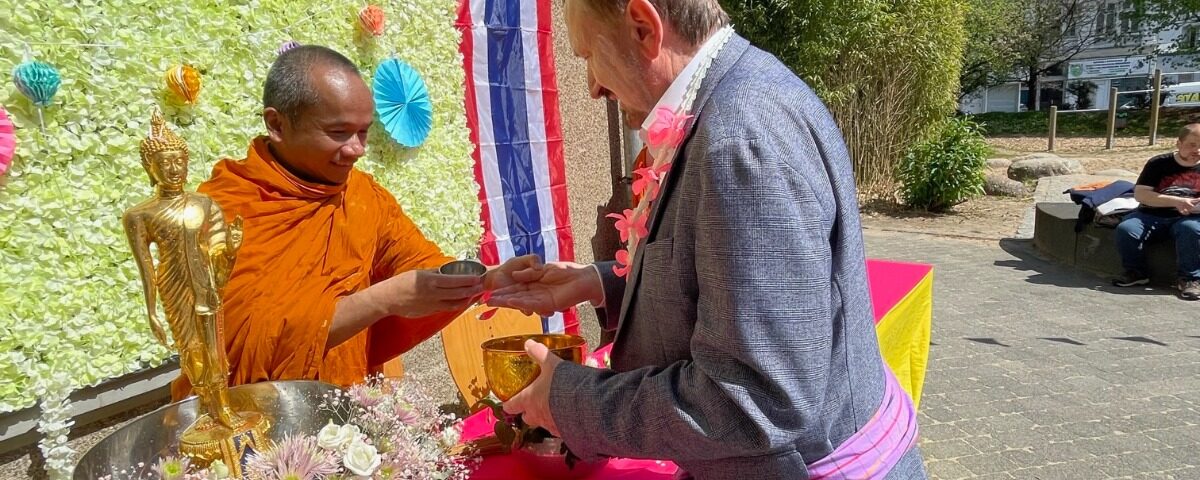 STIMME-DER-HAUPTSTADT: Sie waren kürzlich Gast beim „Thailändischen Wasserfest“. Warum waren Sie bitte dort? Wurden Sie wenigstens ins KALTE Wasser dort geworfen?