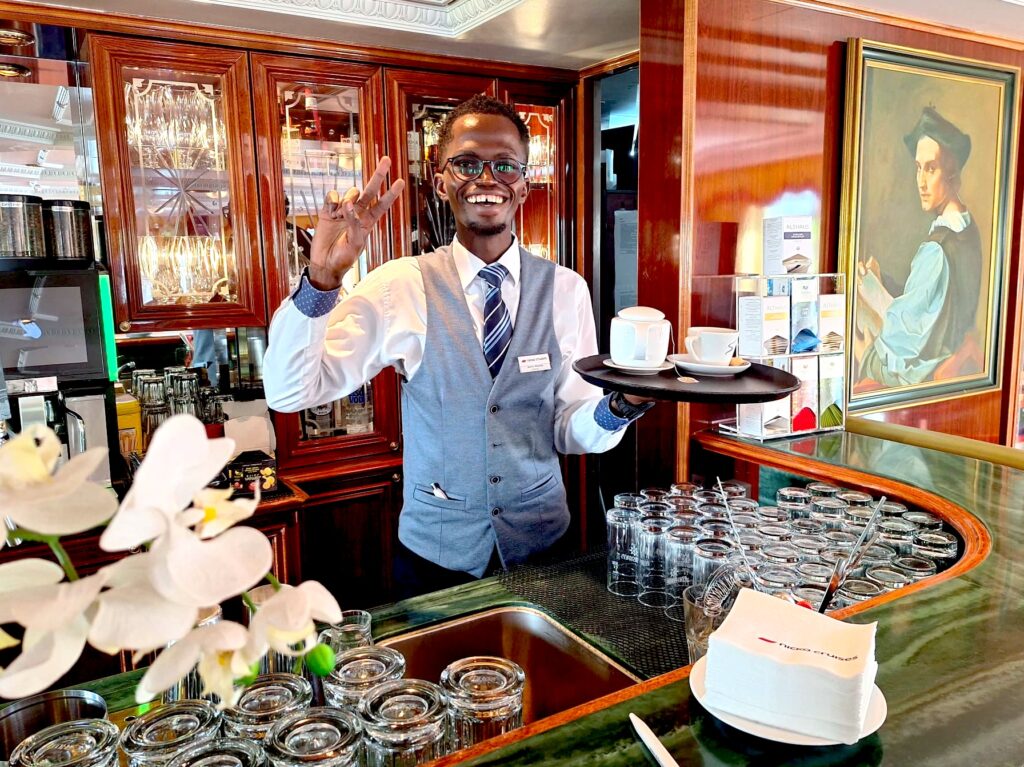 Im Salon wird dem seeluftschnappenden Gast sehr schnell bewusst, welche wichtige Aufgabe der Bordmusiker Andreas innehat. Der Pianist stammt aus Stettin und man merkt ihm an, die Musik ist für ihn eine Berufung. Sie ist sogar seine Leidenschaft. Wer meint, der Bordmusiker Andreas hat nur Seemannslieder im Repertoire, der irrt sich ganz gewaltig! Der Pianist spielt und singt zu den Welterfolgen von Elvis, Frank Sinatra und Roy Orbison beispielsweise. Deutsche Schlager, mit denen uns Michael Holm, Bata Illic oder Gitte Haenning immer noch bei Liveauftritten beglücken, spielt und singt Bordmusiker Andreas ebenfalls.