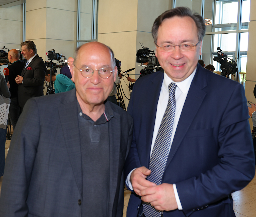 Gregor Gysi (Die Linke) begrüßt Patrick Meinhardt (Foto: Frank Pfuhl)
