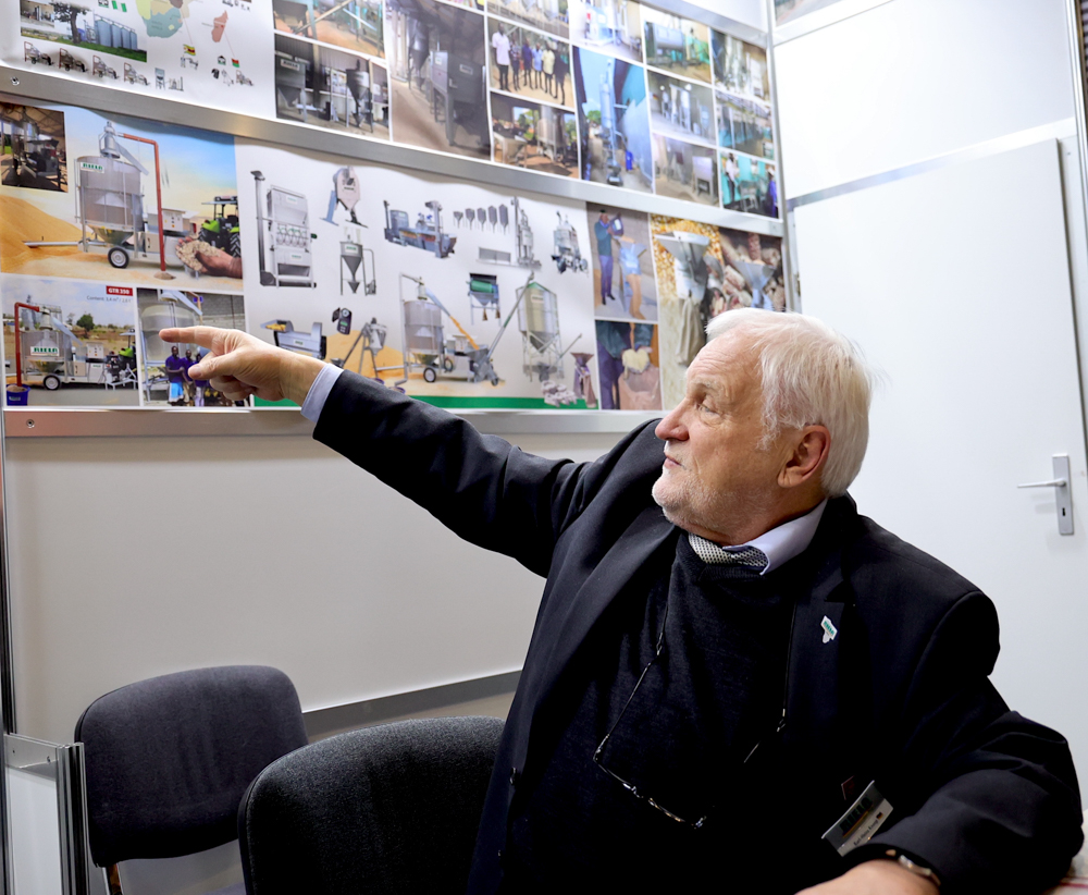 Er konnte auch berichten: „Gleich am Eröffnungstag ist Seine Exzellenz, der Herr Agrarminister aus Ruanda, zu mir an den Stand gekommen und hat mich herzlich begrüßt. Weitere Minister aus aller Welt werden hier in den Messehallen mit mir Gespräche führen. Besonders Gäste aus Afrika sind schwerpunktmäßig bei uns am Stand zu Gast. Nebenbei bemerkt: Einen Tag vor Beginn der IGW sind von unserem Stammwerk in Westfalen aus 10 Schiffscontainer mit unseren Produkten auf die Reise nach Guinea gegangen“.
