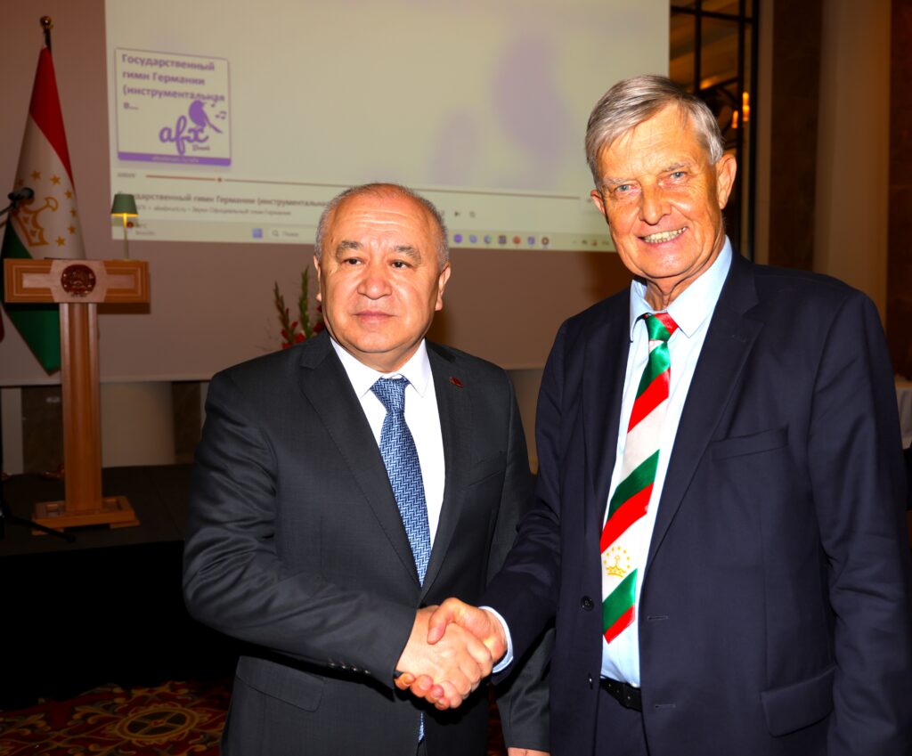 Einer der Gäste war Dipl.-Ing. Volker Tschapke, der Ehrenpräsident der Preußischen Gesellschaft e. V. Er sagte: „Wenn das Wort Zentralasien erklingt, denke ich unweigerlich sofort an das beeindruckende Tadschikistan. Rund 93 Prozent der Fläche bestehen aus Bergen. Die Landschaft ist atemberaubend, die Menschen sind sehr herzlich und sehr gastfreundlich. In Tadschikistan und hier beim Empfang in Berlin-Mitte spürt man es immer wieder: Die Tadschiken kennen die Wörter Touristen und Gäste gar nicht. Man spricht von „Freunden, die zu Besuch gekommen sind“.