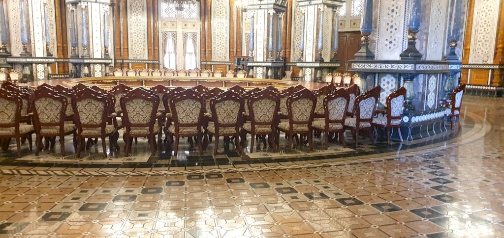 Die Säle kann man auch mieten für Geburtstagsfeiern oder aus anderen Anlässen. Einige Säle sind nur für feierliche Anlässe geöffnet, andere tagtäglich für alle Gäste. Insgesamt findet der Gast 12 Säle vor. Manche erreichen eine Höhe von 46 Metern. Im Goldsaal haben die Handwerker an der Decke Blattgold verwendet.