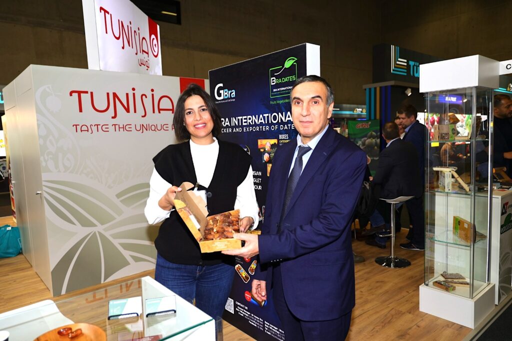 Frau Manel Tayechi Bra kam aus der am nördlichen Mittelmeer gelegenen tunesischen Hafenstadt Bizerte angereist. Sie stellt in Berlin den Fachbesuchern Datteln vor. Die Kauffrau sagte: „Es ist für meine Kollegen und mich eine große Ehre, dass wir Unterstützung aus der Botschaft meines Landes während der Fruit Logistica erhalten. Das zeigt, man achtet und schätzt unsere Arbeit“. Den kurzen Weg von Berlin-Moabit nach Berlin-Charlottenburg anreisen musste Mohamed Bouzir. Er ist Inhaber der „Orient Fruits Import GmbH“. Seine Unternehmung befindet sich in den Großmarkthallen in der Beusselstraße.