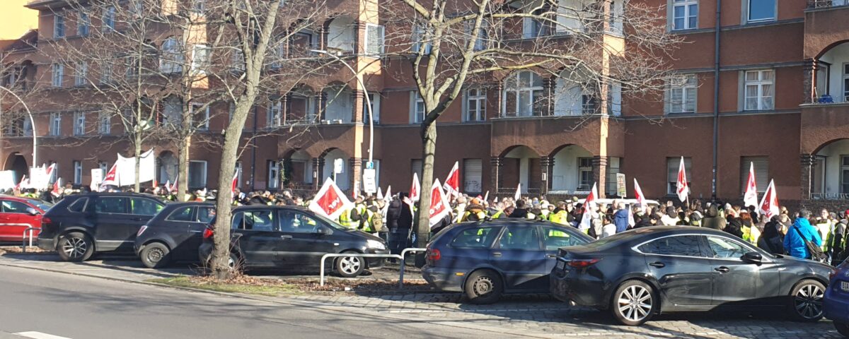 Unsere Fotos zeigen Streikende im Wedding vor dem Charite Campus Virchow-Klinikum.
