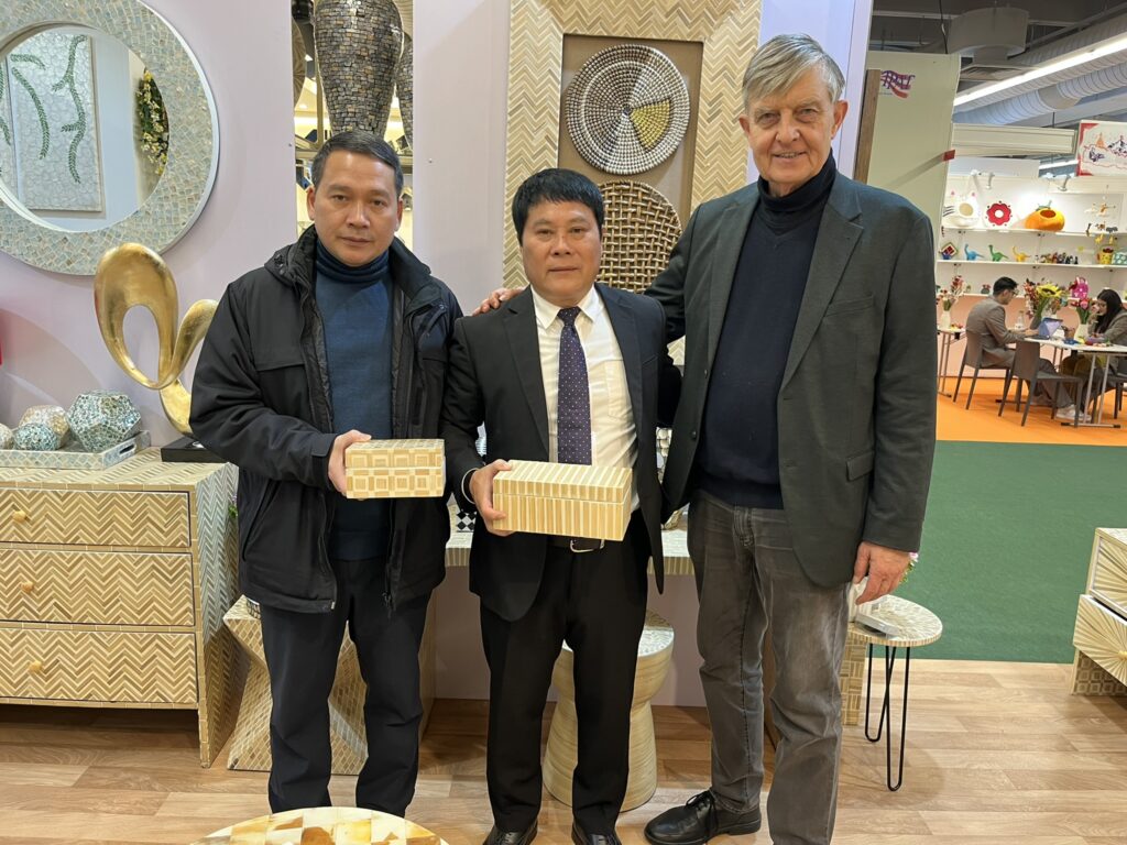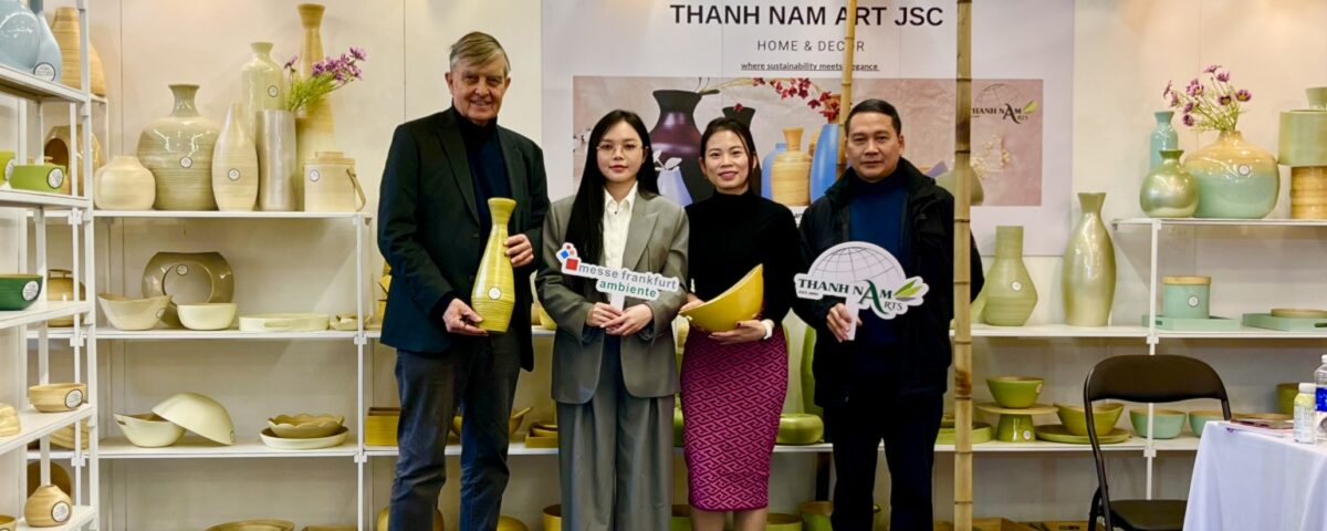 Besonderen Respekt gegenüber den Ausstellern erwies auch das Generalkonsulat der S.R. Vietnam in Frankfurt am Main. Dessen für Wirtschaft und Tourismus zuständiger Konsul, Herr Nguyen Phong, diesen einen ausführlichen Besuch abstattete, Gespräche führte und ihre Arbeit würdigte. So etwa dem südlich von Hanoi gelegenen Unternehmen Thanh Nam Arts, spezialisiert auf die Produktion von Gegenständen wie etwa Vasen aus Bambus. Das in der Hauptstadt Hanoi selbst gelegene Unternehmen Oriental Pearl bot gediegene Waren aus Bambus, Holz und Keramik, ein Schmuck jeder Wohnung. Aus Ho-Chi-Minh Stadt kam das Waren aus Seegras, Bambus, Rattan und Polyrattan präsentierende Unternehmen DS. Artex, ähnliche Produkte bot MK Handicraft aus Da Nang. Und zu den regelmäßigen vietnamesischen Ausstellern und vertrauten Gesichtern der „Ambiente“ gehört Frau Direktorin Mai Hien mit ihrem ebenfalls in Ho-Chi-Minh-Stadt ansässigen Unternehmen Hien Uyen Vi, ebenfalls mit einem besonderen Fokus auf Rattan- und Bambusprodukten.